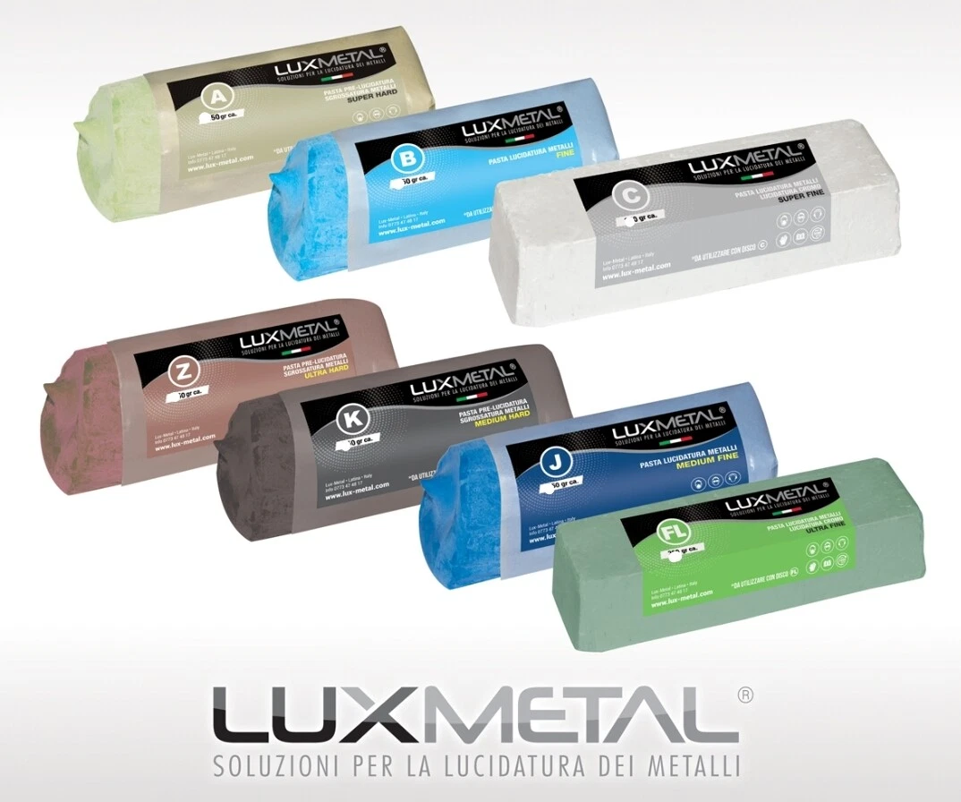 Feste Lux Metal Schleifpasten: erhältlich in verschiedenen Körnungen für unterschiedliche Schleifstufen.